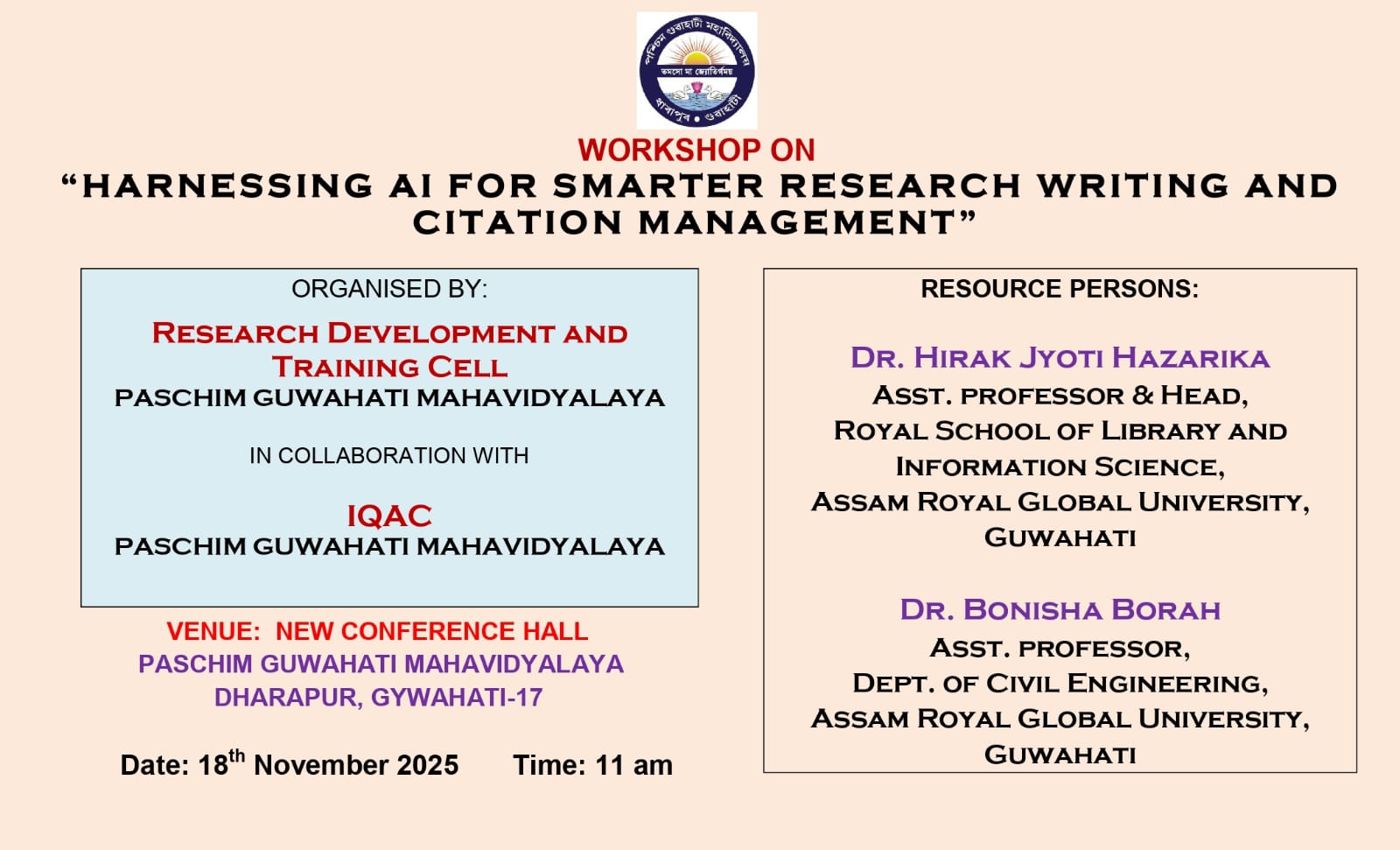FDP on "E-Content Development and Digital Mode of Teaching organized by Training Research and Publication Cell, Paschim Guwahati Mahavidyalaya