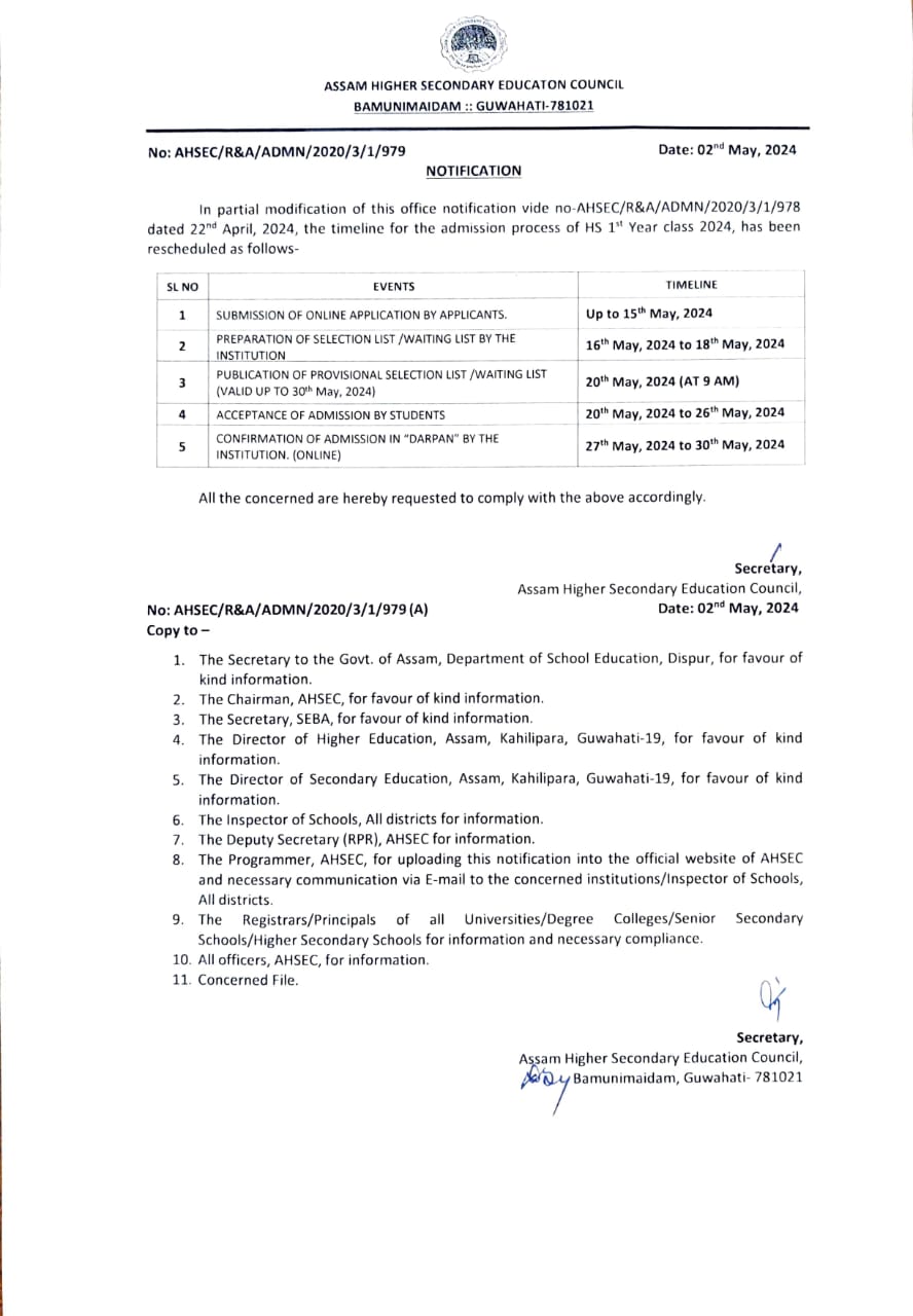 - Rescheduled time line for the admission process of HS first year, 2024 View